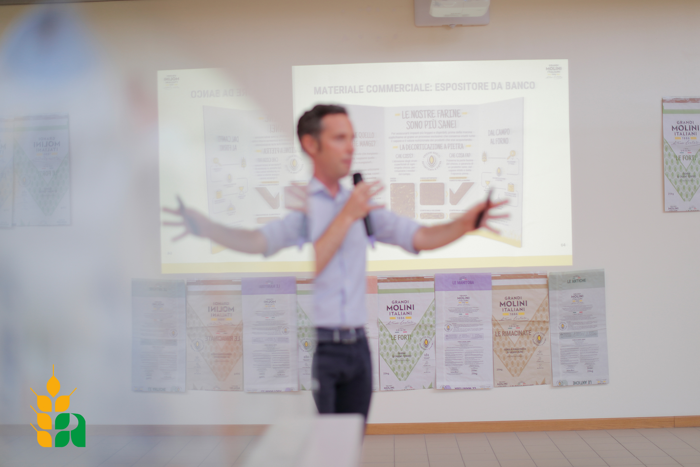 In sala CONVIVIUM, poi, la Grandi Molini Italiani Spa ha portato il giovane, ma emergente Capo Area Andrea Canonico, il quale ha condotto in modo impeccabile la bella iniziativa, agevolato senza dubbio dalla semplicità e simpatia oltre che ad una grande professionalità, degli interventi del Tecnico Gabriele Marrucci, il quale si è giustamente accattivato le simpatie di molti clienti cheli hanno sottoposto molte domande a conferma di quanto ho appena di lui scritto. BRAVO Gabriele e grazie!!